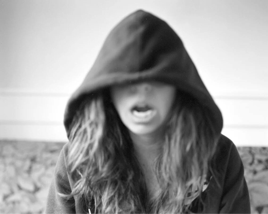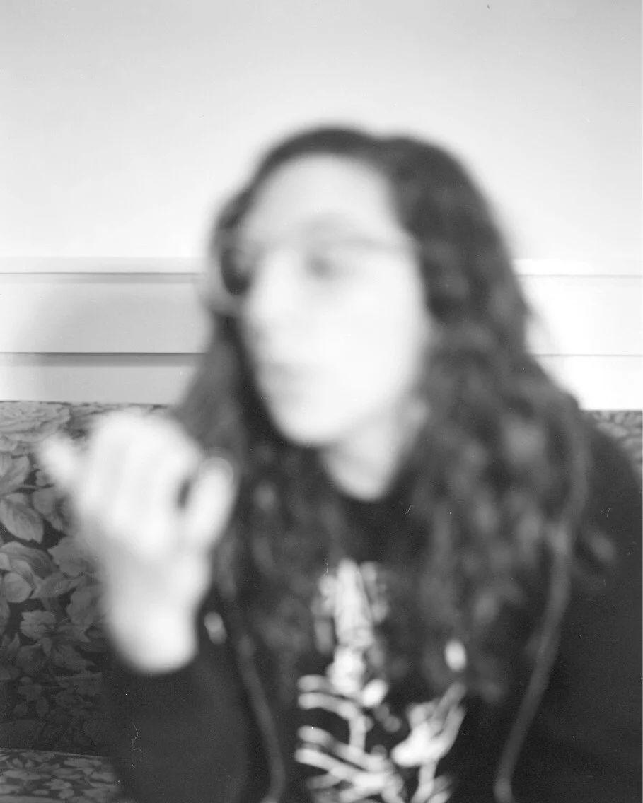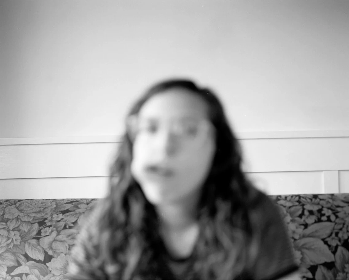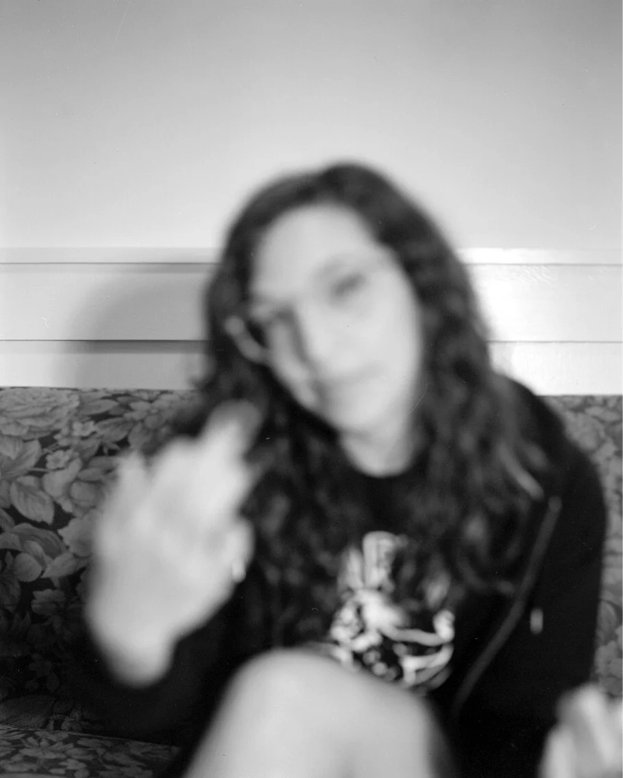 to shoot with the intrepid felt so deliciously meticulous, so completely parallel with my default mode of functioning: cripplingly thorough. regardless of our compatibility, i continuously struggled to find a rhythm through the many steps required of the camera. i had never before made images like this. the format itself demanded my full attention and intention, allowing for a welcomed intimacy with the camera. level the body, focus my trash twin, make sure the aperture blades are closed, cock the shutter, pull the dark slide on white, strike my pose, discretely press the shutter release, return the dark slide flipped to black, pull the holder, begin again. so many times, i thought i had done it all, leveled, focused, cocked. i would sit in my most performative version of me and release the shutter, only to remember i had forgotten to pull the dark slide. the recurring taunting of that thin sheet of protective plastic. i wonder now, if my portraits had been in focus, would that frustration be visible; a slightly strained reaction to the unexpected presence of that fucking dark slide. my portraits were out of focus because i was greedy for the limited light in the house. i opened my aperture all the way up, not stopping to think about the impact this had on my depth of field. the other day, a friend mentioned how strange it was that when the eye of the camera was opened at its widest capacity, it became more difficult to focus, more complex. in my attempt to get the most, i narrowed the scope of perceptible information; all these unexpected limitations brought about by overcompensation. it feels truest to show the portraits as they are, in the order in which they were shot. a soft focus documentation of the rawness of this experience.