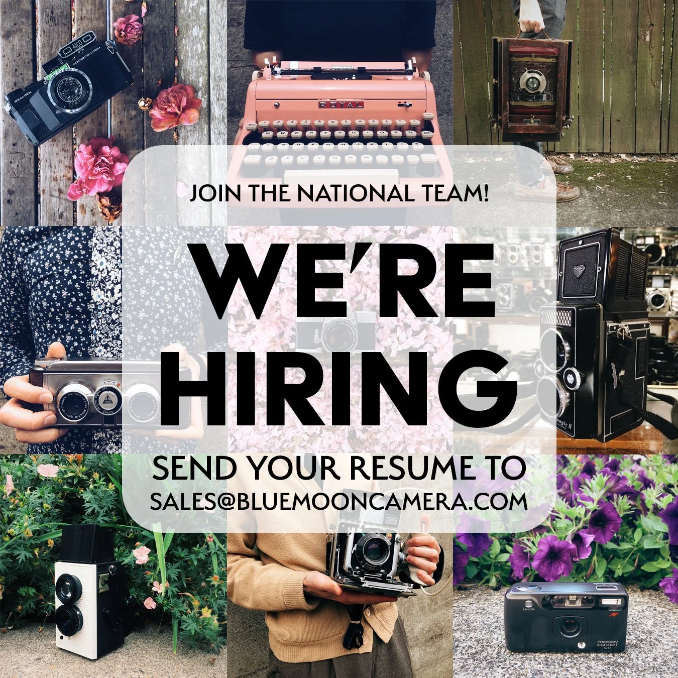 We're excited to welcome a new member to the team! We encourage you to stop by the shop or email your resume and cover letter to sales@bluemooncamera.com.